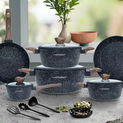 طقم حجر جرانيت غير لاصق من 11 قطعة مع مقلاة غير لاصقة وصك OEM خالٍ من PFOA