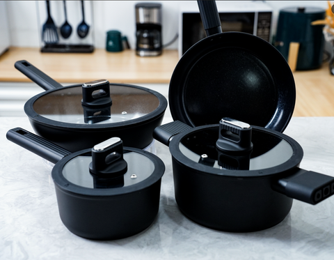تصميم كلاسيكي مقلاة غير لاصقة 5 قطع أدوات مطبخ معدنية مستدامة للطبخ العائلي أواني كسرولة مثالية