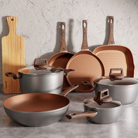 עיצוב מודרני אלומיניום מזויפים 15 חתיכות מחבת לא מקל ערכות אינדוקציה תחתית בישול כלי בישול סיר רוטב עם ידית בקליט
