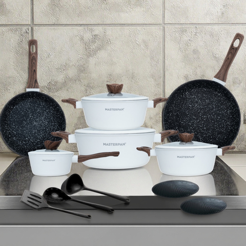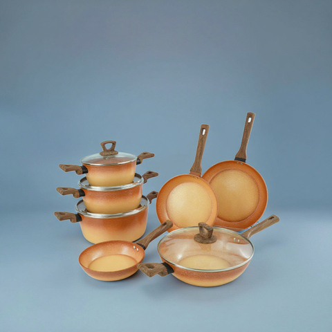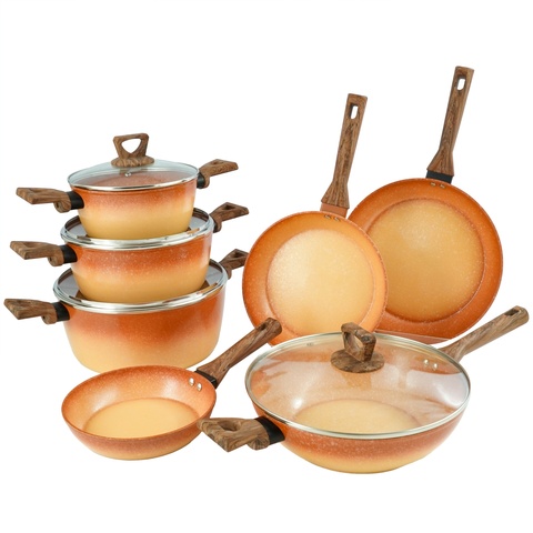 12 pcs סדרה מזויפת קלאסיקות אבן מניבת סיר ללא מקל סט ערכת כלי אלומיניום כלי בישול