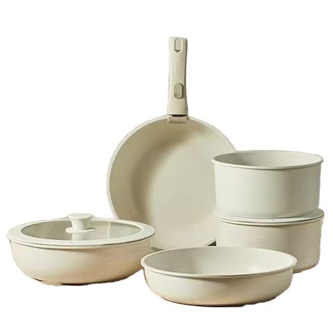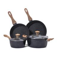 סדרת אבן מטאוריוליט מעולה לסביבה 6 יח 'ללא מקל מחבת כלי בישול סט כלי אלומיניום יצוק וחבתות עם ציפוי קרמיקה
