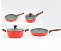 El juego de utensilios de cocina ecológicos antiadherentes no tóxicos modernos incluye revestimiento de mármol, sartén de aleación de aluminio, olla de cocina alta